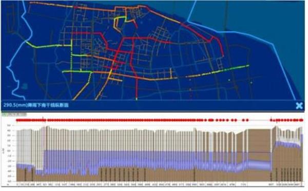 構(gòu)建污水管網(wǎng)和雨水管網(wǎng)水力模型,利用在線監(jiān)測數(shù)據(jù)和氣象數(shù)據(jù),對污水管網(wǎng)運(yùn)行風(fēng)險(xiǎn)提前感知與預(yù)警,結(jié)合河網(wǎng)模型實(shí)時(shí)模擬內(nèi)澇積水風(fēng)險(xiǎn)分布和程度,實(shí)現(xiàn)積水風(fēng)險(xiǎn)預(yù)警、報(bào)警。